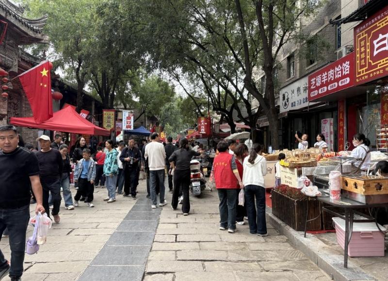 除了文化体验,古城的美食同样吸引着游客,韩城馄饨、羊肉饸饹、花椒酸奶、芝麻烧饼、油酥角等本地小吃摊位前,香气四溢,游客边走边尝,感受韩城的舌尖风味。
